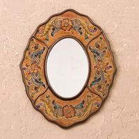 Brown Floral Reverse-Painted Glass Wall Mirror from Peru 'Caramel Colonial Wreath' Item ID: 2671671291