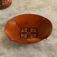 Brown Hand Tooled Leather Catchall Plate from Peru 'Colonial Florals' Item ID: 2671690130