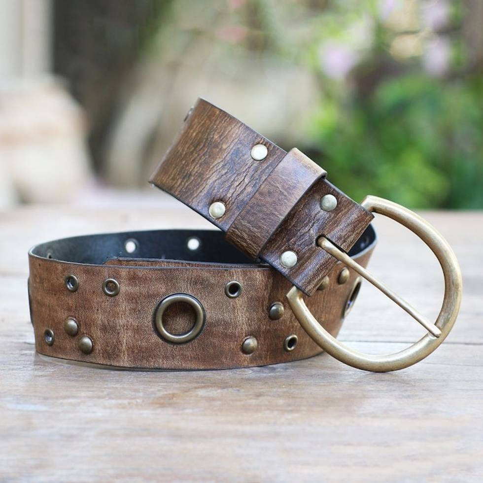 Brown Iron Studded Leather Belt 'Antique Look in Brown' Item ID: 2671737161