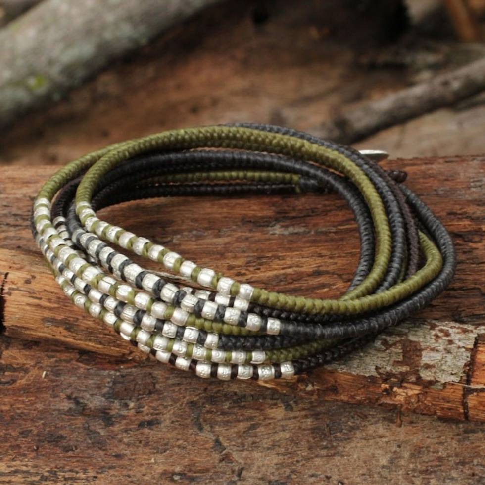 Brown Khaki Grey Wrap Bracelet with Silver Accents 'Karen Khaki Chic' Item ID: 2671640883