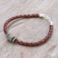 Brown Leather Braided Bracelet with Sterling Silver Pendants 'Ties of the Earth' Item ID: 2671798253