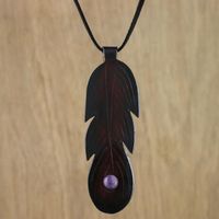 Brown Leather Feather Pendant Necklace with Amethyst 'Feather Spirit' Item ID: 2671800609