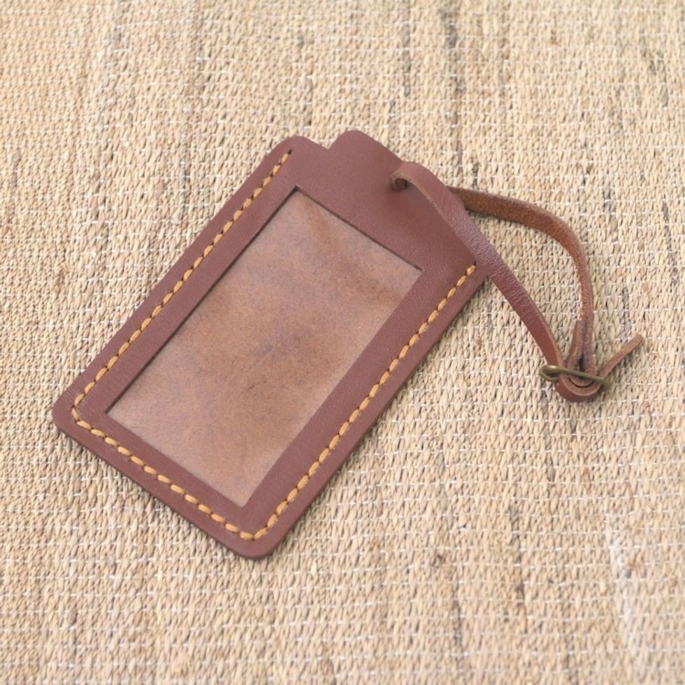 Brown Leather Luggage Tag in Black Crafted in Java 'Identity in Brown' Item ID: 2671737718