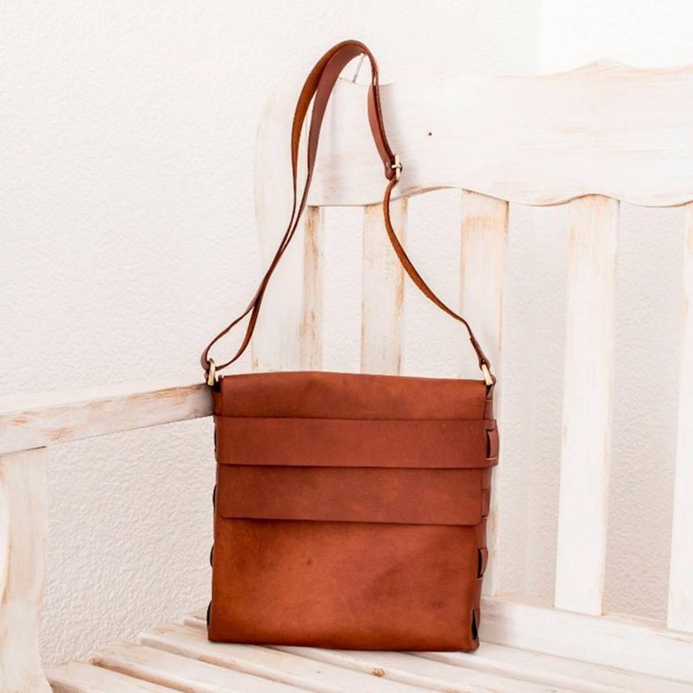 Brown Leather Messenger Bag from Guatemala 'Audacious' Item ID: 2671777159