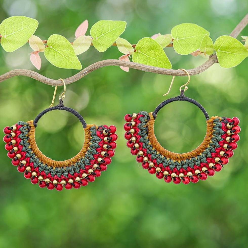 Brown Macrame Dangle Earrings with Red Magnesite Beads 'Alluring Nimbus' Item ID: 2671797150
