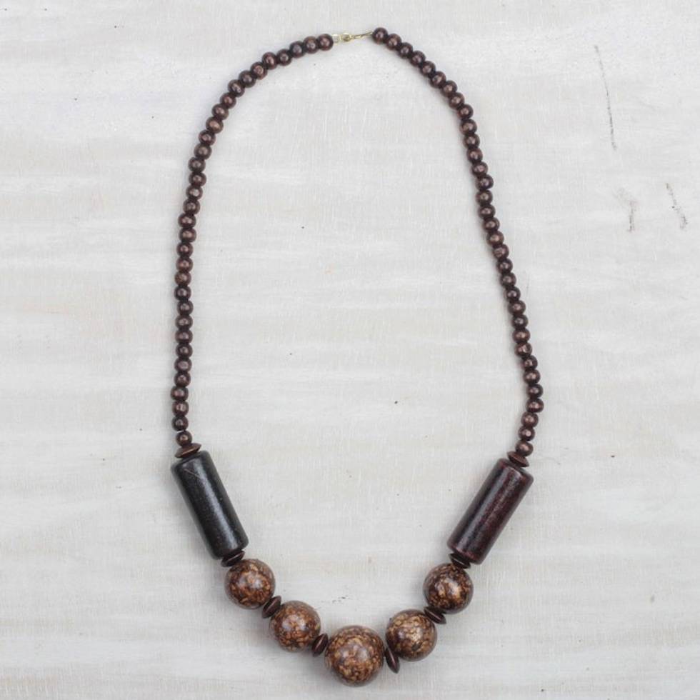 Brown Sese Wood Beaded Necklace from Ghana 'Coffee Beauty' Item ID: 2671801099