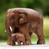 Brown Teak Wood Sculpture of Mother and Child Thai Elephants 'Love and Care in Brown' Item ID: 2671641529