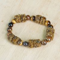 Brown Tiger's Eye and Recycled Glass Beaded Stretch Bracelet 'Earthy Flair' Item ID: 2671805456