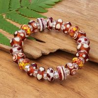 Brown White Art Glass and Crystal Beaded Stretch Bracelet 'Earthy Spell' Item ID: 2671796587