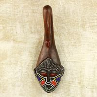 Brown Wood Aluminum Recycled Glass Bead African Mask Ghana 'Scorpion Face' Item ID: 2671803597
