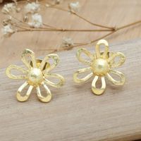 Brushed-Satin Finished 18k Gold-Plated Button Earrings 'Eden Bouquet' Item ID: 2671763292