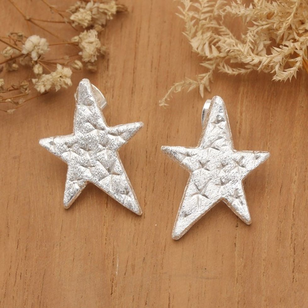 Brushed-Satin Finished Star-Shaped Drop Earrings 'Bold Celebrity' Item ID: 2671764593
