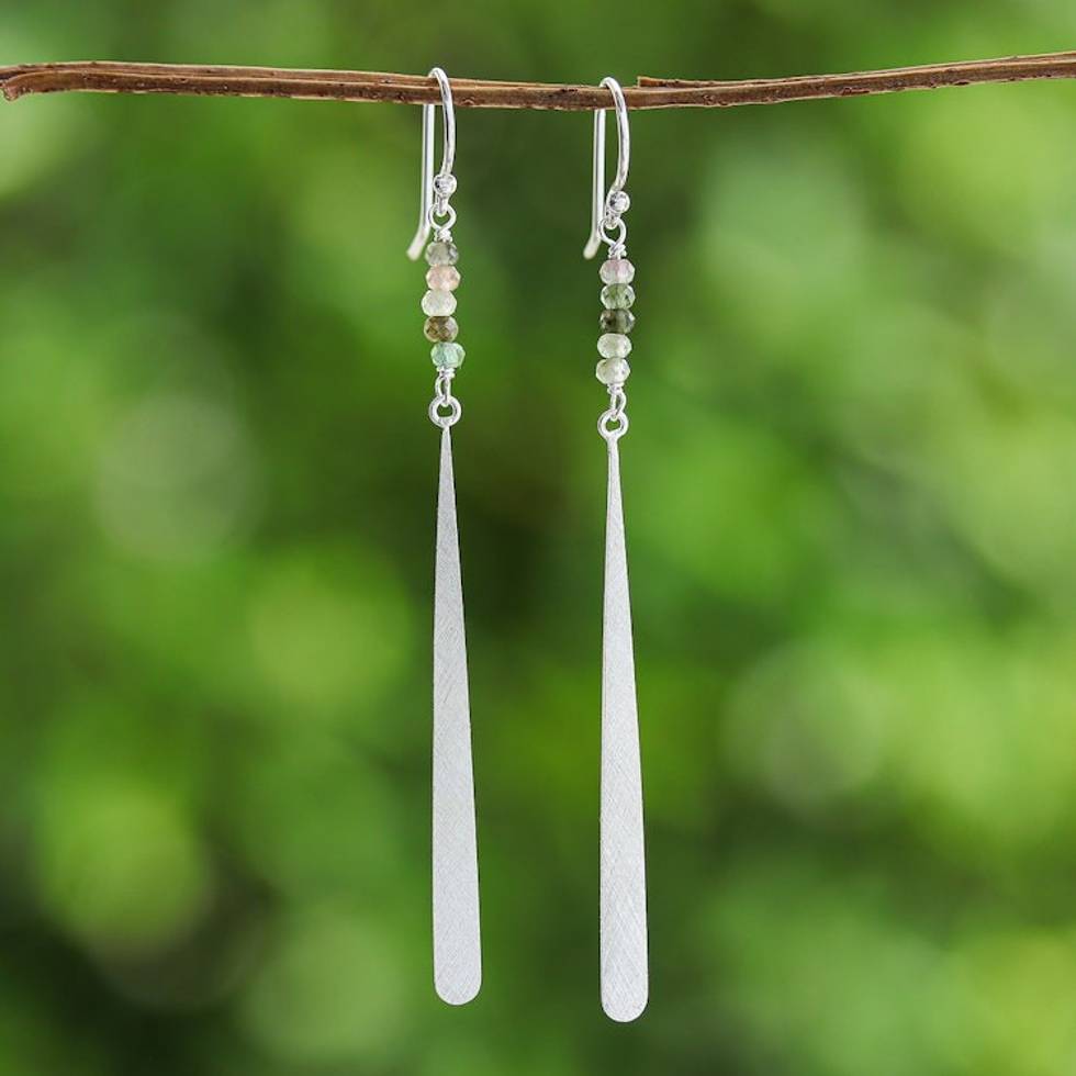 Brushed-Satin Finished Tourmaline Silver Dangle Earrings 'Minimalistic Drop' Item ID: 2671646717