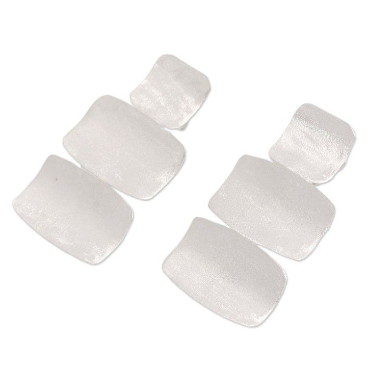 Brushed-Satin Modern Sterling Silver Dangle Earrings 'Metropolis Dame' Item ID: 2671764764