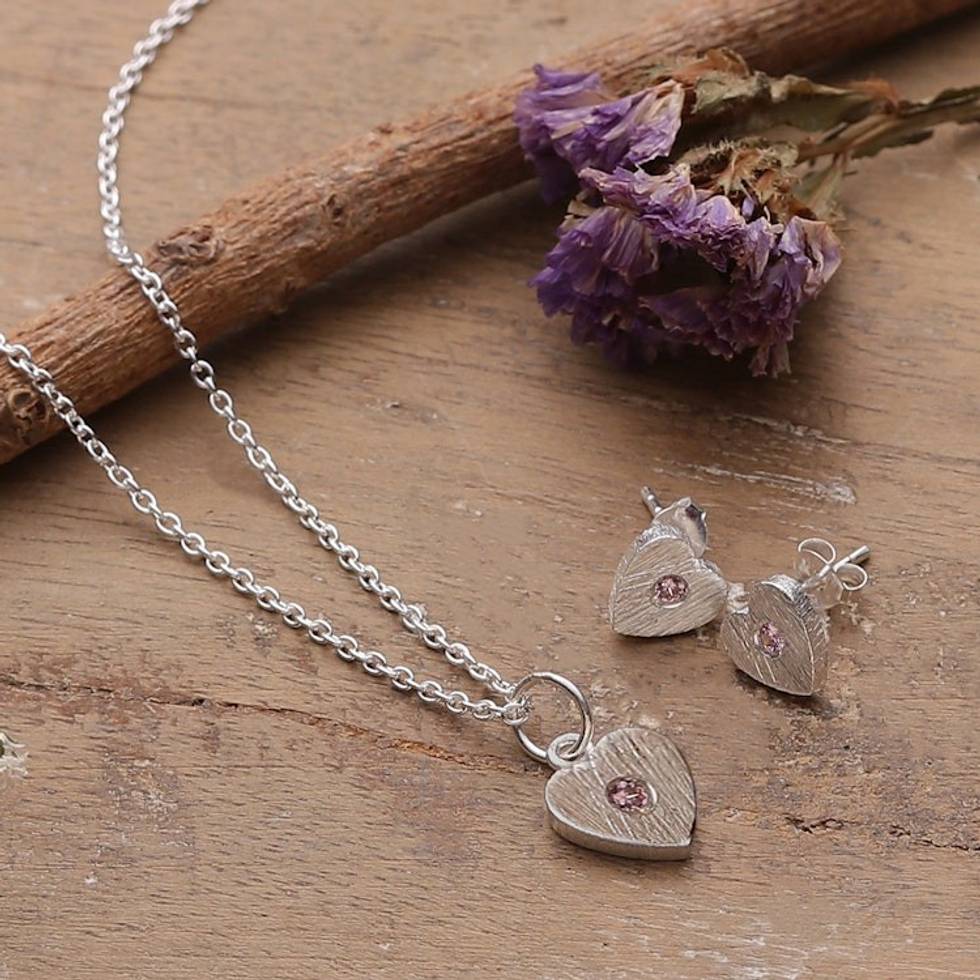 Brushed-Satin Romantic Necklace and Earring Jewelry Set 'Silver Liaison' Item ID: 2671781185