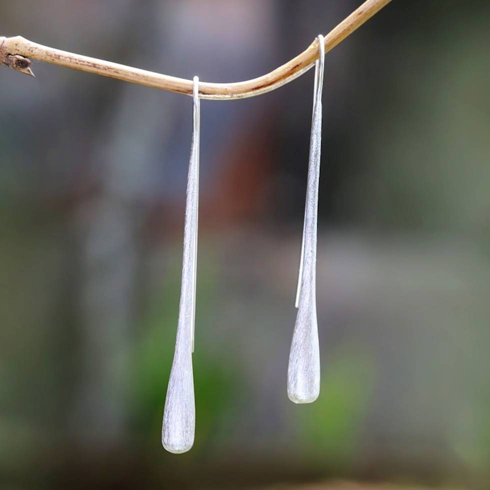 Brushed-Satin Sterling Silver Drop Earrings from Bali 'Brushed Classic' Item ID: 2669921900