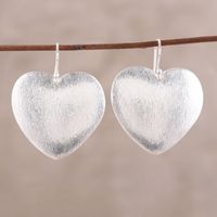 Brushed-Satin Sterling Silver Heart Earrings from India 'Glimmering Heart' Item ID: 2671792615