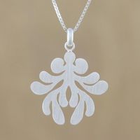 Brushed-Satin Sterling Silver Pendant Necklace from Thailand 'Symmetric Fern' Item ID: 2671800660