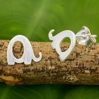 Brushed Silver Elephant Stud Earrings from Thai Artisan 'Tiny Elephants' Item ID: 2671802093