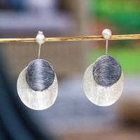 Brushed Sterling Silver Drop Earrings with Moon Details 'Moon Lullaby' Item ID: 2676646905