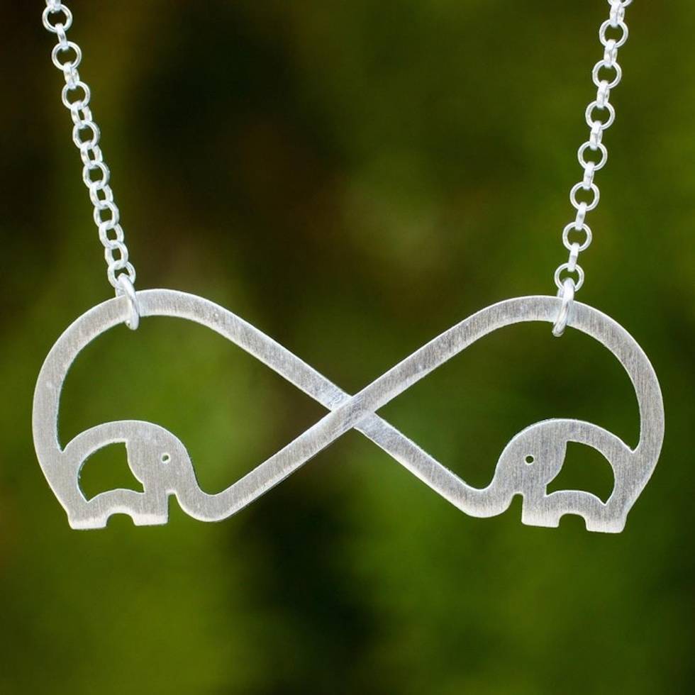 Brushed Sterling Silver Handcrafted Elephant Necklace 'Infinity Elephant' Item ID: 2671802171