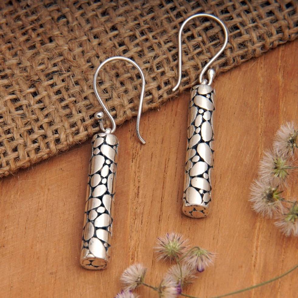 Bubble-Patterned Cylindrical Sterling Silver Dangle Earrings 'Bubble Empress' Item ID: 2671556242