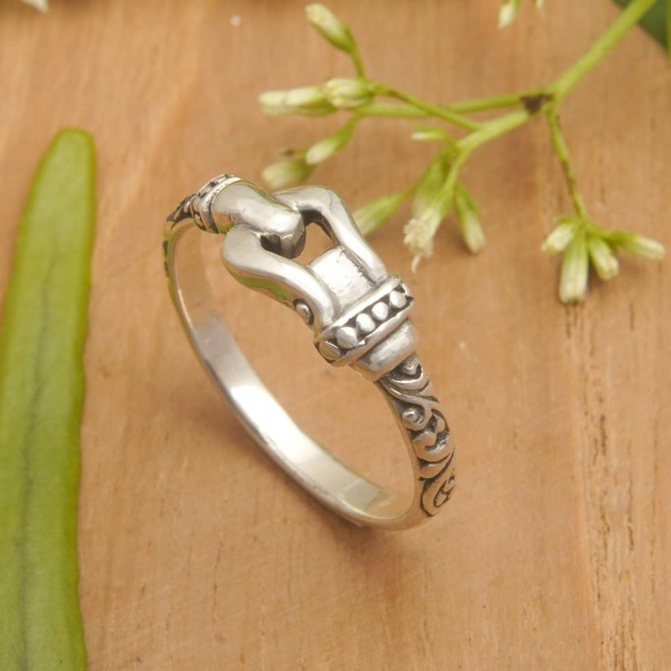 Buckle-Themed Sterling Silver Band Ring Made in Bali 'Linked Together' Item ID: 2669921888