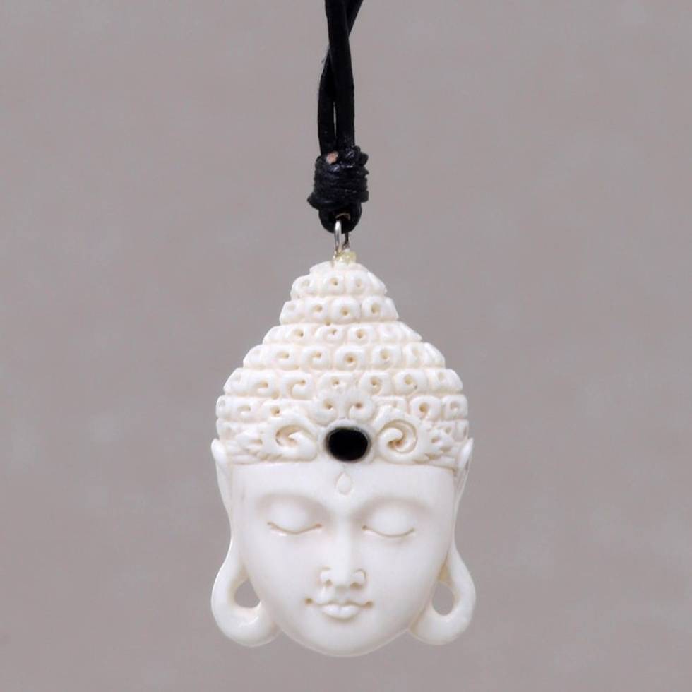 Buddha Head Cow Bone Pendant on Adjustable Leather Cord 'White Buddha Head' Item ID: 2669922318