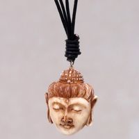 Buddha Head Necklace in Carved Cow Bone and Leather 'Buddha Head II' Item ID: 2671701833