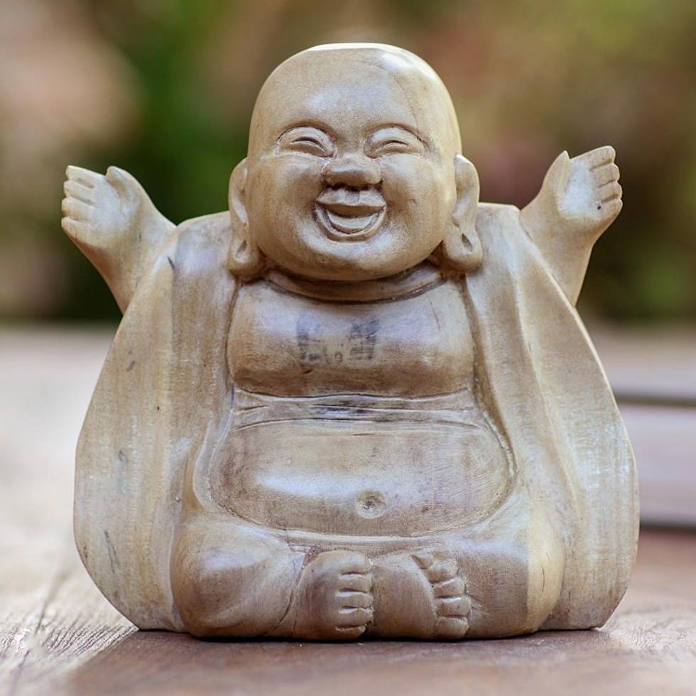 Buddha Sculpture in Hibiscus Wood 'Mirthful Buddha' Item ID: 2671820817