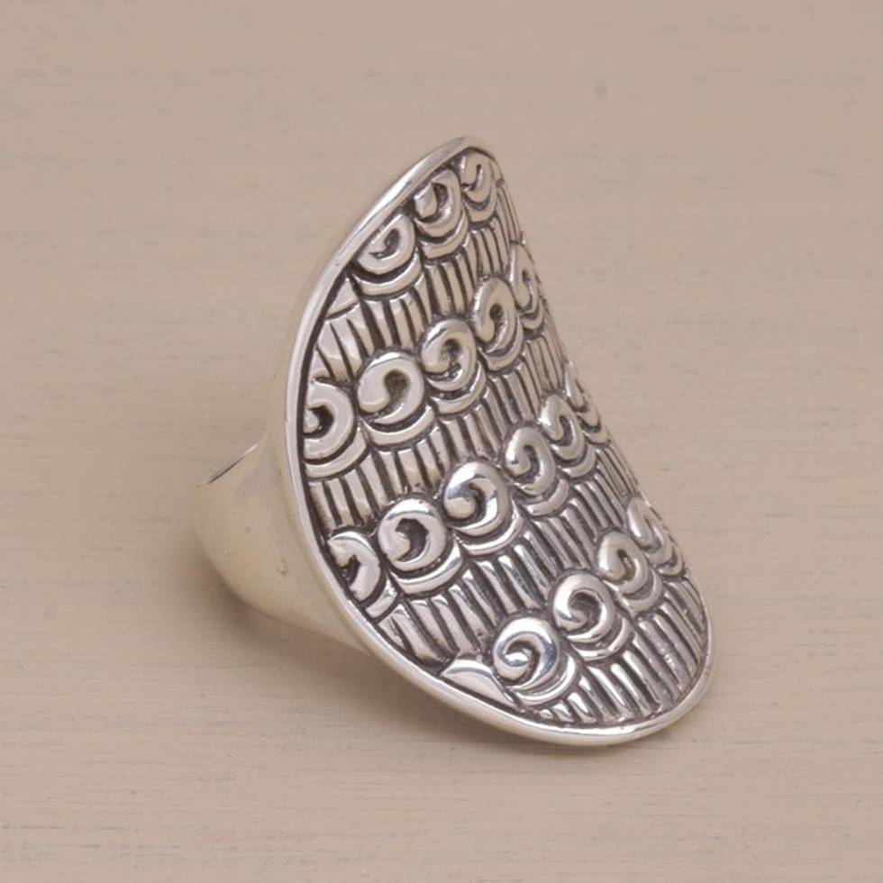 Buddhist Motif Sterling Silver Cocktail Ring from Bali 'Samsi Shield' Item ID: 2671627095
