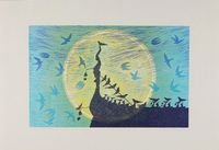 Buddhist Nature Theme Thai Woodcut Print 'Under the Moonlight II' Item ID: 2669889092