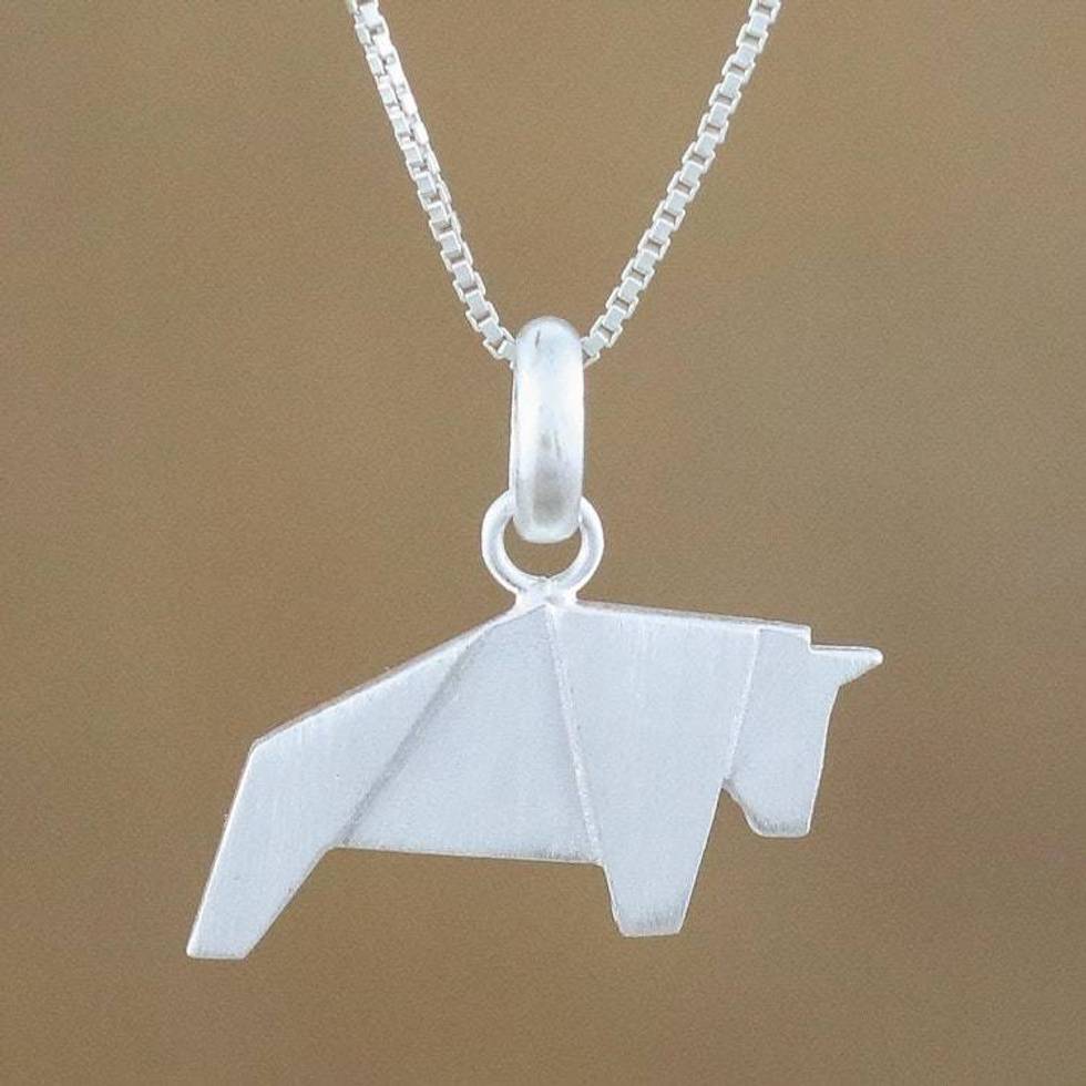 Bull Necklace Hand Crafted in Brushed Sterling Silver 'Origami Bull' Item ID: 2676653418