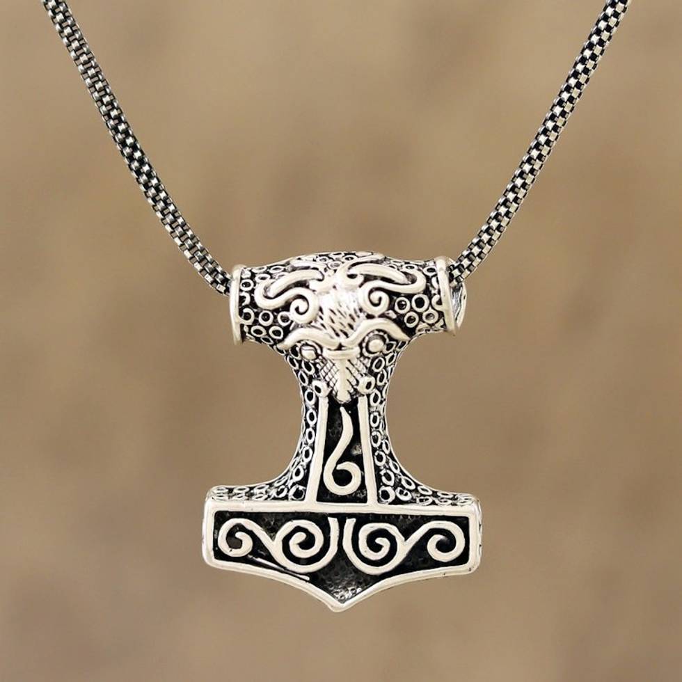Bull-Themed Sterling Silver Thor's Hammer Necklace 'Thor Bull' Item ID: 2671792019