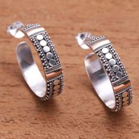 Bun Pattern Gold Accented Sterling Silver Half-Hoop Earrings 'Bun Loops' Item ID: 2671820802