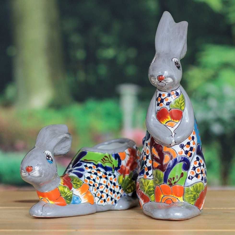 Bunny-Shaped Hacienda Ceramic Flower Pots Set of 2 'Hacienda Hops' Item ID: 2669932273
