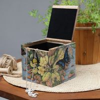 Butterfly Leaf Floral-Themed Hand-Painted Wood Jewelry Box 'Tropical Forest' Item ID: 2671569827