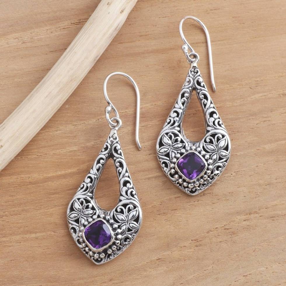 Butterfly Motif Amethyst Dangle Earrings 'Kawung Butterfly' Item ID: 2671821623