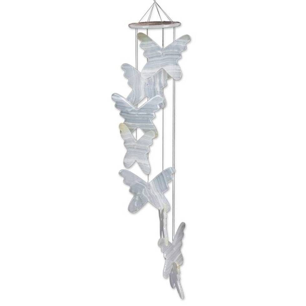 Butterfly-Themed Artisan-Made White Onyx Mobile from Mexico 'Dawn Butterflies' Item ID: 2676646836