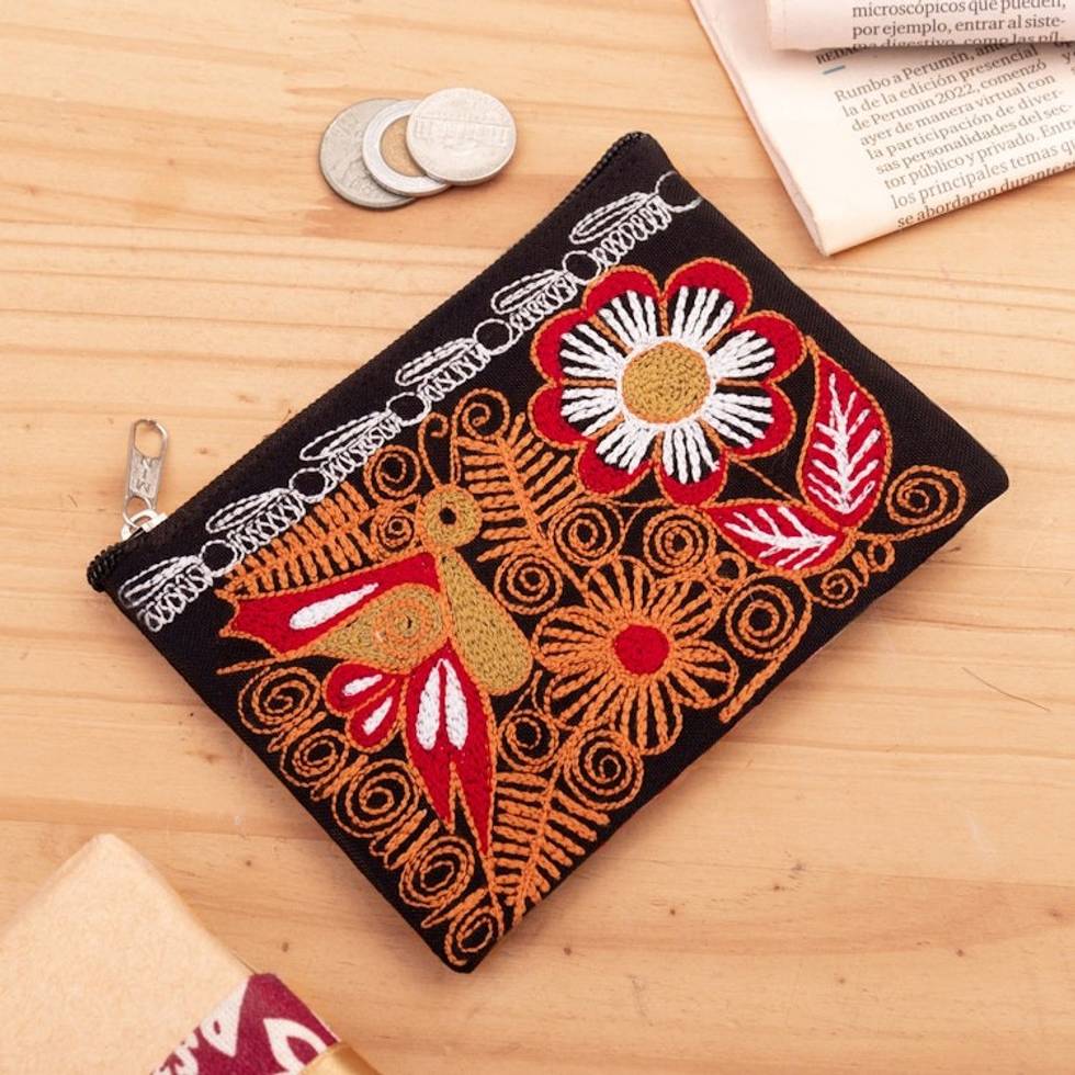 Butterfly-Themed Embroidered Coin Purse in Orange and Red 'Evening Butterfly' Item ID: 2671698016
