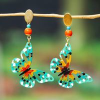 Butterfly-Themed Hand-Painted Natural Agate Dangle Earrings 'Butterfly Whispers' Item ID: 2671798549