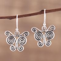 Butterfly Themed Sterling Silver Dangle Earrings 'Butterfly Spiral' Item ID: 2671791608
