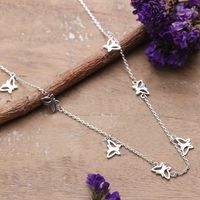 Butterfly-Themed Sterling Silver Station Charm Necklace 'Butterfly Desire' Item ID: 2671781517