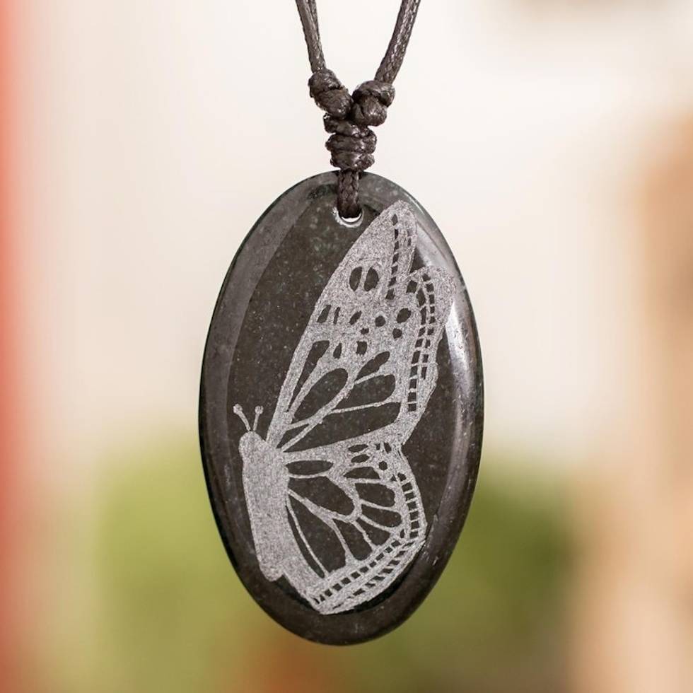 Butterfly-themed Unisex Adjustable Jade Pendant Necklace 'Evolution Butterfly' Item ID: 2671772550