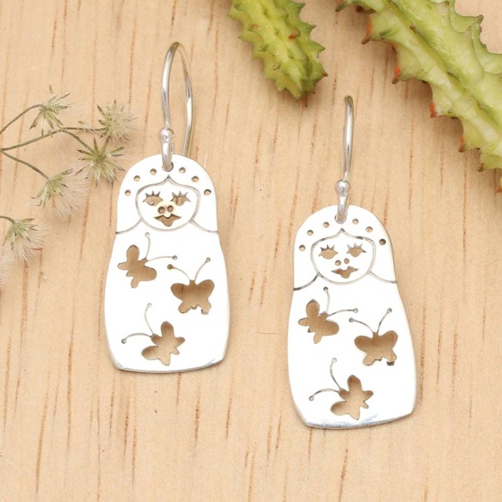 Butterfly-Themed Whimsical Sterling Silver Dangle Earrings 'Butterfly Girl' Item ID: 2671765419