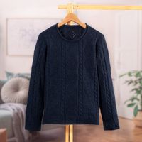 Cable Knit and Geometric Patterned Blue 100 Alpaca Sweater 'Blue Florentine' Item ID: 2669891419