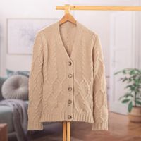 Cable Knit Soft Champagne Alpaca Blend Button-Up Sweater 'Champagne Expression' Item ID: 2671697978