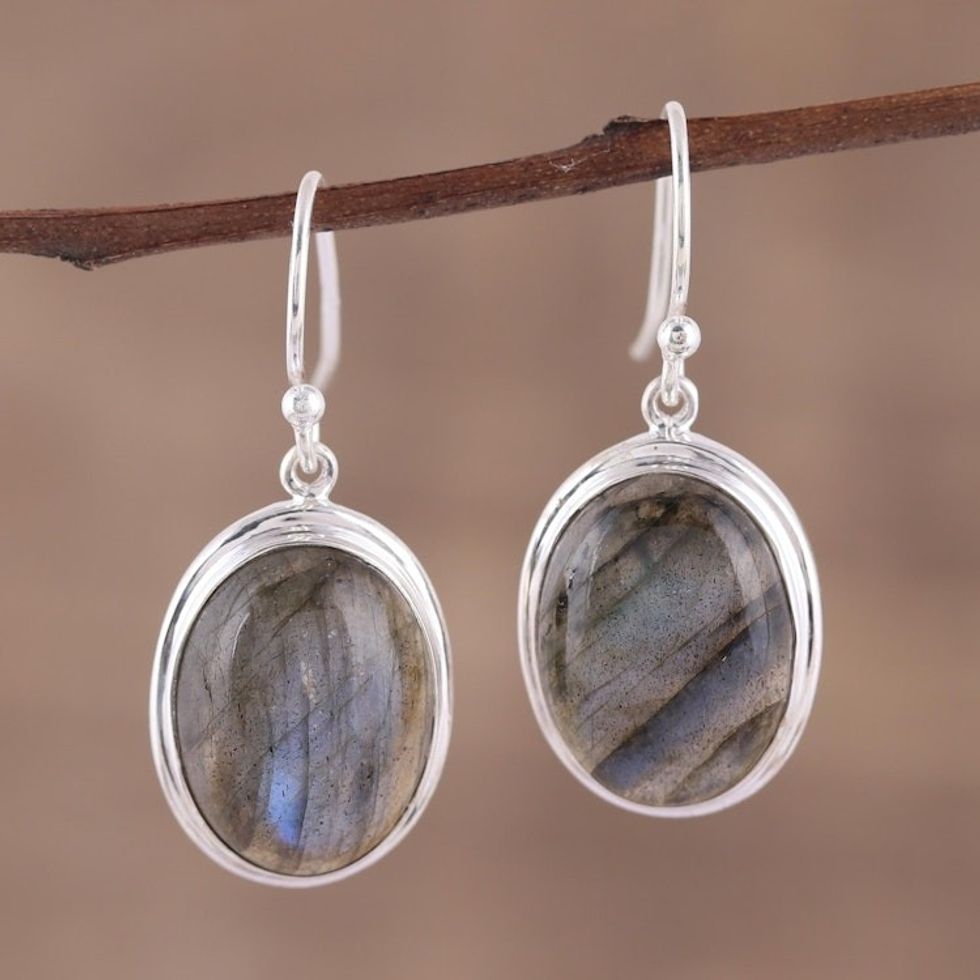 Cabochon Labradorite and Silver Dangle Earrings 'Darkening Sky' Item ID: 2671620500