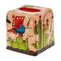 Cactus-Themed Handcrafted Talavera Ceramic Tissue Box Cover 'Cactus Convenience' Item ID: 2671807634