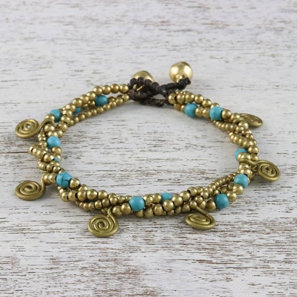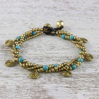 Calcite and Brass Beaded Charm Bracelet from Thailand 'Delightful Spirals' Item ID: 2671798747